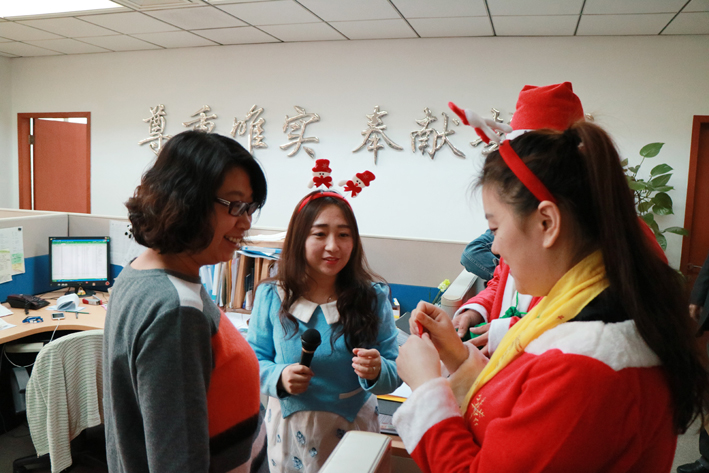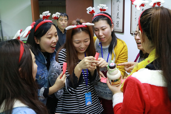 今年的奖品丰富多样,不但有实用的家电,还有也有加拿大纯天然的营养佳品枫糖浆,更有来自德国、韩国、马来西亚的食品,居家的红酒开瓶器及洗护套装……抽奖开始,由总裁办乔装的圣诞老人和圣诞女孩将礼品车带到办公区域,大家放下手中繁忙的工作,每个人都摩拳擦掌跃跃欲试,希望能捧个大奖而归,大家共同享受这一刻的快乐。笑声、欢乐声、惊呼声充满着整个公司,其乐融融,好不热闹!最后年终大奖三洋电饭锅被来自设备时代公司的外贸业务员镡东宁捧得。