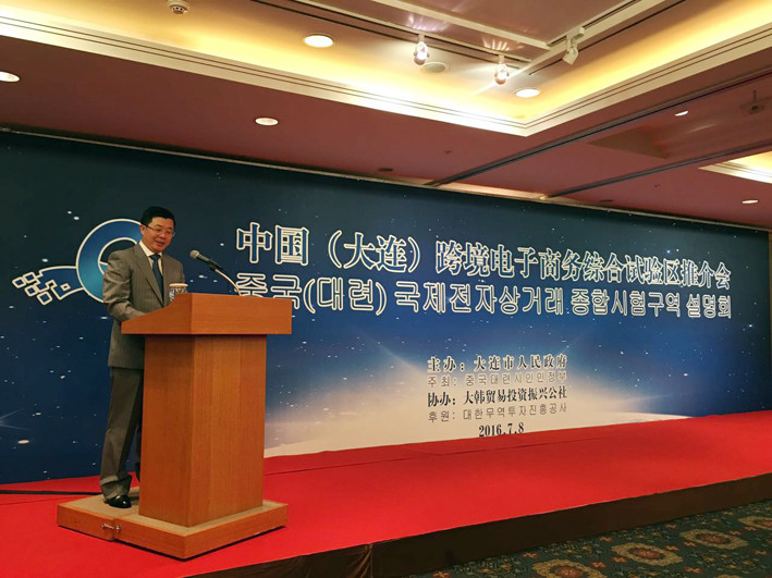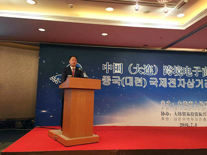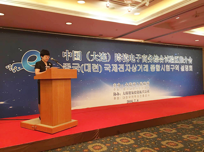7月8日,由大连市政府主办,大韩贸易投资振兴公社协办的中国(大连)跨境电子商务综合试验区推介会在韩国首尔举行。大连市委常委、副市长卢林率领大连40余家企业代表与180余家韩国企业进行交流讨论,迈克集团旗下出口时代作为受邀企业之一参加了本次会议,同时出口时代CEO徐延峰作为企业代表,以《出口时代:构建线上中韩贸易便利化渠道》为题介绍了平台服务和发展历程。