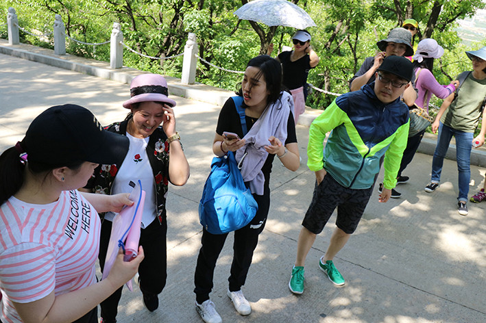 恰逢集团企业文化宣传年,总裁办将大家分成了诚笃队、迈步队、向前队、克坚队、图强队并高举彩旗,意气风发生机勃勃,一路拍照,一路欢笑,好似一条五彩的长龙在林间蜿蜒。五月的大黑山,绿树成荫,花香四溢。徜徉在五月的和风中,沐浴在初夏的煦日下,迈克集团的员工们展开怀抱,放松心情,尽情享受着大自然带来的清新,转眼便来到了大黑山平台处。而总裁办为了丰富大家的爬山之旅,特意为大家定制的团队游戏环节也将在此处开展。 “心有灵犀猜词语”涵盖了从成语到企业文化、从方言到体育运动各个方面,队员们用诙谐的形容词、丰富的肢体语言将每个词表现的淋淋尽致,而队员们则默契配合,短短的几秒答案便脱口而出,团队间的默契程度自然直线上升。而“唱响大黑山”则让队员们“脑洞大开”,你一言我一语,将团队合作精神发挥到极致,更让我们的新员工感受到同事们的热情,感受到迈克集团积极向上的企业精神。欢快的歌曲在林间回响,不论是独唱还是小合唱,大家争先恐后生怕自己的队伍落于下风。哪怕不熟悉的歌曲也要跟着轻轻附和,一场游戏下来,不知道你有没有get到几首新歌呢?一番激烈的团队游戏之后,最终由总裁办、风控部、审计室组成的诚笃队摘得了桂冠,队员们每人收获贡枣一袋,真是胜利的“果实”呢!