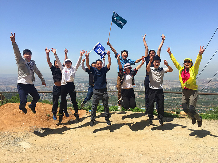 一路向上,大黑山峰似近在眼前,想要登顶确是要更费一番力气,无不有坚定的意志才能攀登向上,一步一个脚印,步步都是艰辛,大家互相鼓励互相加油,用集团“迈步向前克坚图强”的企业宗旨鼓励自己一路前行,不畏艰难困阻,征服巍峨的大黑山。特别是一些女同事们,体力虽不如男生,却也超越了自己,登上了顶峰,更要给她们一个大大的赞!更要值得表扬的是我们的摄影师徐毅,已近退休的年龄依旧跑前跑后,来回的奔波只为给大家留下一个个美丽的瞬间。