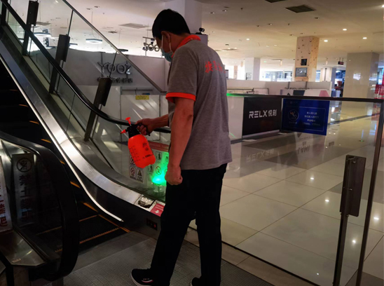 商场人流量大,人员来源复杂,防疫工作尤为重要,商场严格按照省、市防疫指挥部要求,在各部门的紧密配合下,对场内防疫工作进行了严格管控,长期坚持开展日常性无死角消毒、进入商场测量体温、未佩戴口罩者禁止进入商场、扫描健康码等工作,确保了商场购物环境的卫生安全。