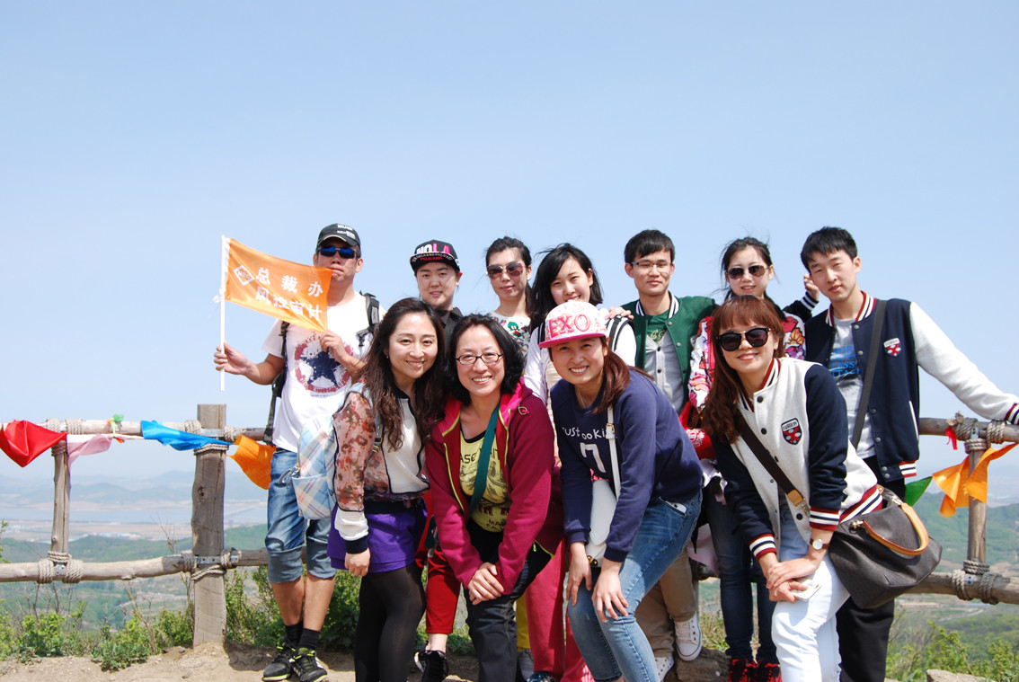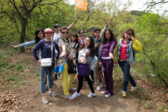 早晨7点40分,班车准时向小黑山风景区出发,大家精神焕发,笑意盎然,满怀憧憬踏上了旅程。一路上欢声笑语不断,动听的音符飘向了窗外,活跃的气氛感染着每一个人,不知不觉间便到达了目的地。天公作美,万里无云的天空衬得小黑山更加的秀丽,在景区门口合影留念后大家便开始了今天的第一项活动——征服小黑山,各个部门的队长手拿五彩的旗子在前面领路,队员们随后你追我赶的穿梭在绿色的丛林里,有走不动的,大家互相搀扶一把,有想留念的,“摄影师们”又积极的为你拍照,中间还有一段拾金不昧的小插曲……经过一个多小时的努力,参加活动的所有员工都登上了顶峰,会当凌绝顶,一览众山小,登高远眺,美丽的风景尽收眼底,疲惫一扫而空,留下的只有征服顶峰的喜悦。本次活动以部门为单位共分为五个小分队,旨在增强大家的团队合作能力与互帮互助的精神,同时加强了集团各部门之间的沟通交流,大家一起游览踏青,增进了友谊和了解,让整个集团的员工更具团结性与向心力。